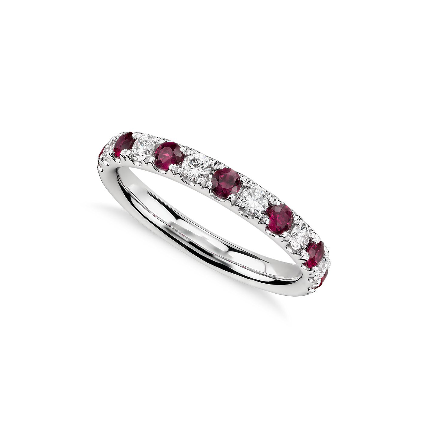 Anillo medio riviere con engaste de cristales rosados y blancos, elaborado en Plata 925/950.