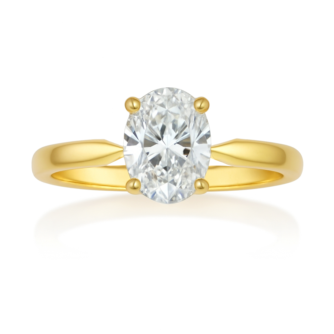 Anillo de compromiso solitario con engaste de cristal central en forma oval, sin duda un modelo que te enamorará a primera vista, elaborado en Oro 18K.